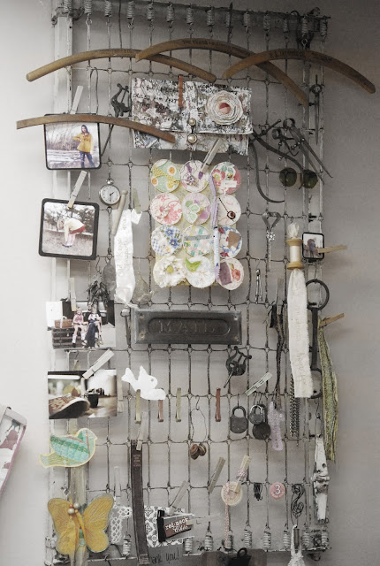 I've been wanting to make a monkey's fist knot ever since Suzanne blogged about making one, so I would have been giddy if she just sent me that alone! There's also vintage sheet music, postcards, bottles, a table cloth, an old chippy doorknob, and three old bed springs! Happy Monday to me :)